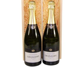 Two bottles (75cl) presented in a high quality double wooden gift box with a sliding lid, packed with wood wool. Your message is handwritten in gold ink on a card and placed with your gift.
